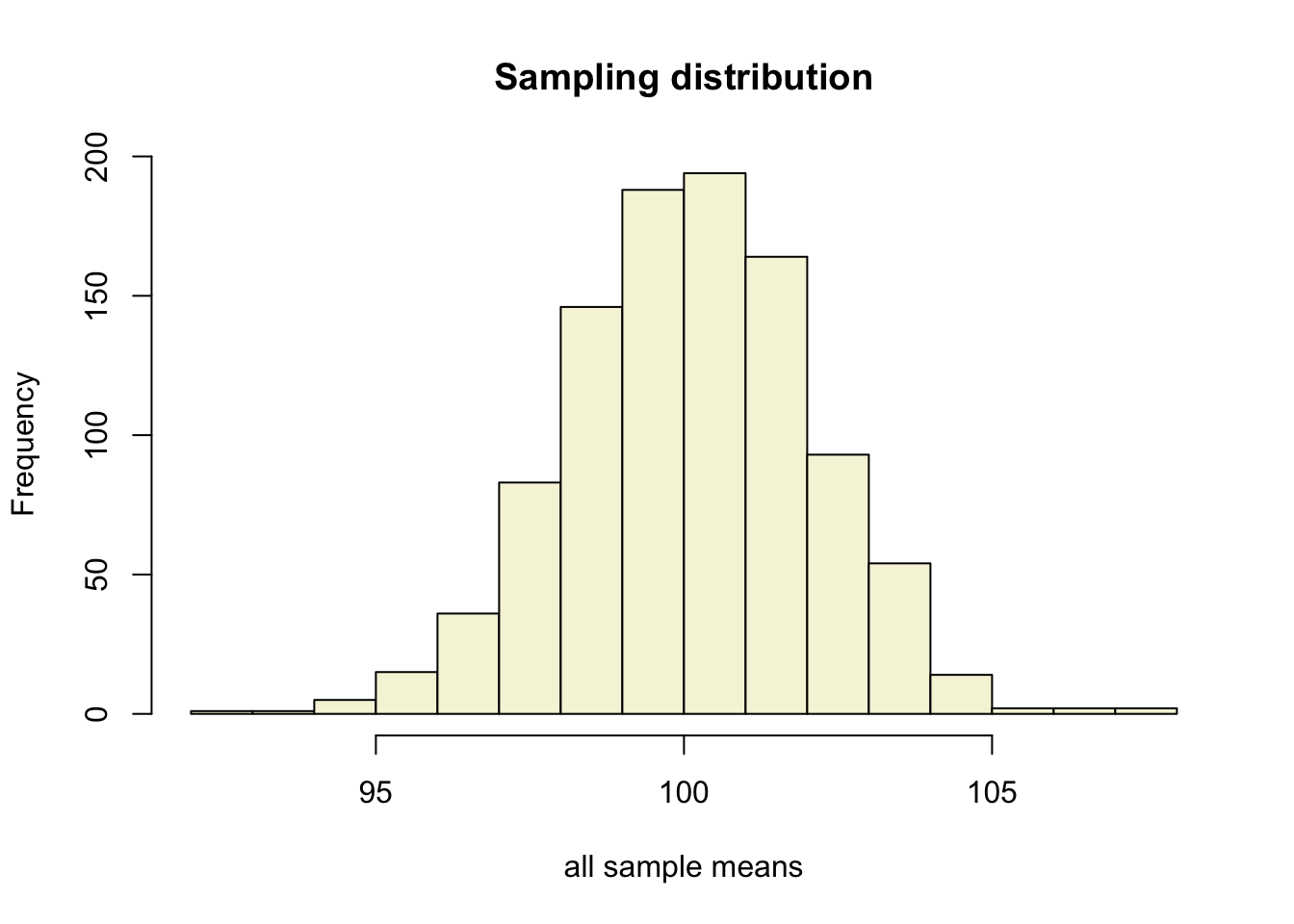 xlab = "all sample means")