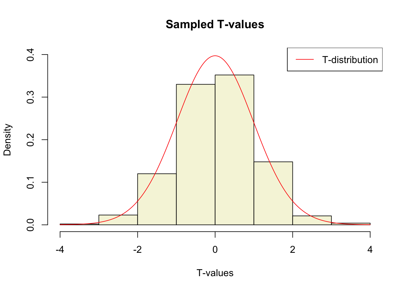 legend("topright", lty = 1, col="red", legend = "T-distribution")