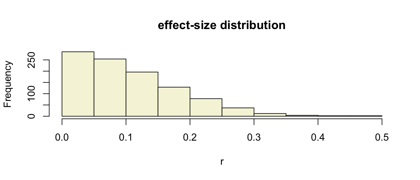 hist(r, main = "effect-size distribution", col = "beige")