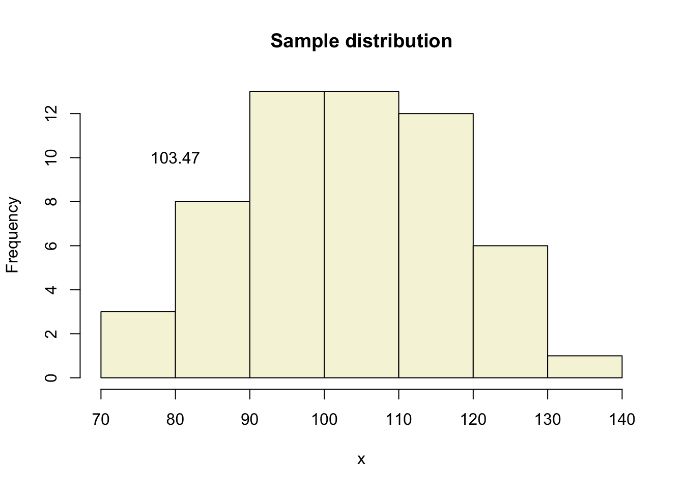 hist(x, main = "Sample distribution", col = "beige")