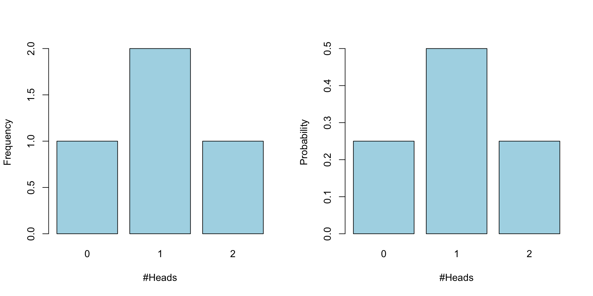 | #Heads | frequencies | Probabilities |
