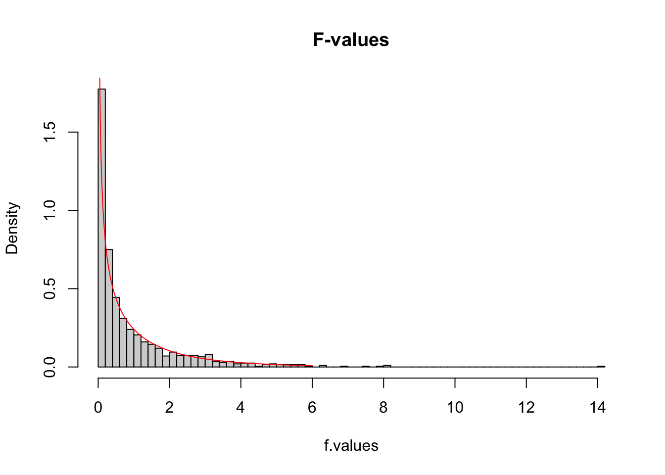 hist(f.values, freq = FALSE, main="F-values", breaks=100)